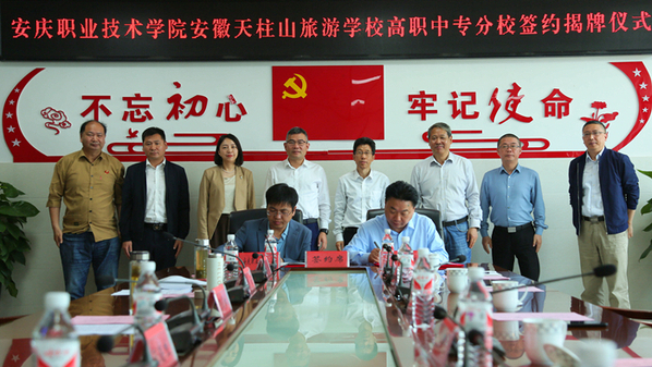 5月7日上午,安慶職業(yè)技術(shù)學(xué)院安徽天柱山旅游學(xué)校高職中專分校簽約暨揭牌儀式在安徽天柱山旅游學(xué)校隆重舉行。安慶職院黨委副書記、校長畢明生,潛山市委副書記、市長王國林出席簽約儀式并為高職中專分校揭牌。安慶職業(yè)技術(shù)學(xué)院安徽天柱山旅游學(xué)校高職中專分校的成立標(biāo)志著安慶職院在堅決貫徹落實黨中央國務(wù)院深化職業(yè)教育改革指示精神,優(yōu)化我市高等職業(yè)教育布局,踐行中高一體貫通培養(yǎng),探索校地融合共同發(fā)展的道路上,又邁出了堅實的一步!