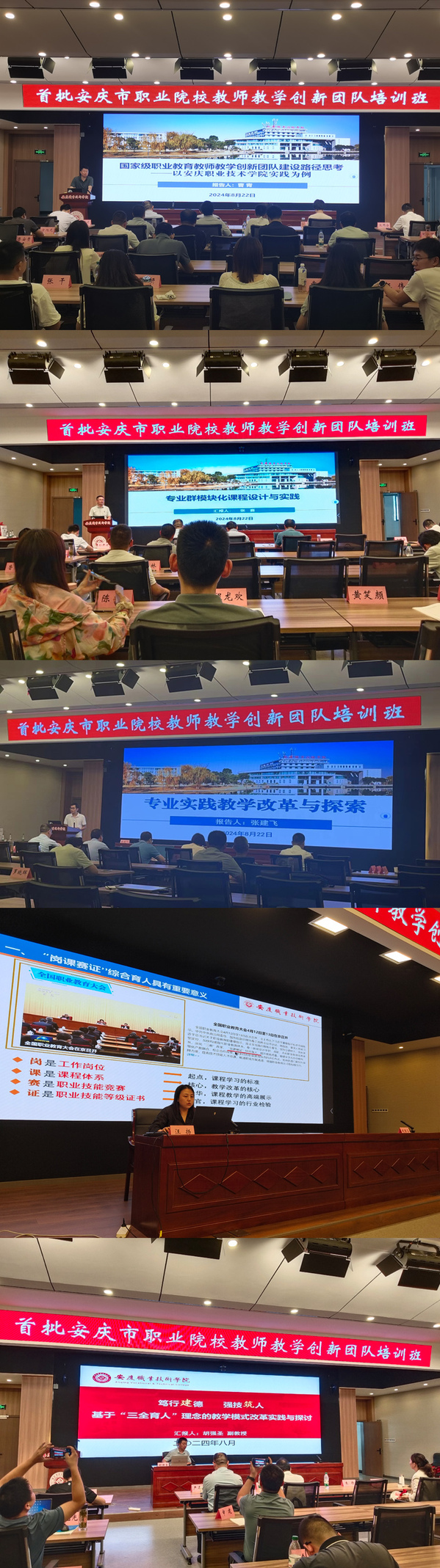 為深化安慶市職業(yè)教育改革與創(chuàng)新,提升職業(yè)院校教師在師德、團(tuán)隊(duì)領(lǐng)導(dǎo)、課程建設(shè)、教學(xué)研究等方面的素養(yǎng)與能力,8月22日至23日,首批安慶市職業(yè)院校教師教學(xué)創(chuàng)新團(tuán)隊(duì)培訓(xùn)班在安慶職業(yè)技術(shù)學(xué)院成功舉辦。10支安慶市職業(yè)院校教師教學(xué)創(chuàng)新團(tuán)隊(duì)負(fù)責(zé)人和核心成員共計(jì)29人參加培訓(xùn)。