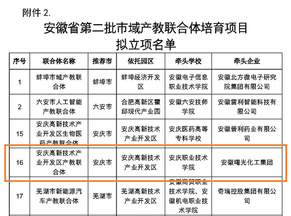 近日,安徽省教育廳發(fā)布公示,以安慶經(jīng)開(kāi)區(qū)為依托,以安慶職業(yè)技術(shù)學(xué)院為牽頭學(xué)校,安徽環(huán)新集團(tuán)為牽頭企業(yè)組建的安慶經(jīng)濟(jì)技術(shù)開(kāi)發(fā)區(qū)產(chǎn)教聯(lián)合體,作為安徽省首批省級(jí)市域產(chǎn)教聯(lián)合體建設(shè)項(xiàng)目,順利通過(guò)省教育廳考核驗(yàn)收。安徽省首批省級(jí)市域產(chǎn)教聯(lián)合體建設(shè)項(xiàng)目立項(xiàng)12家,驗(yàn)收通過(guò)9家。同時(shí),以安慶職院為牽頭學(xué)校組建的安慶高新技術(shù)產(chǎn)業(yè)開(kāi)發(fā)區(qū)產(chǎn)教聯(lián)合體,獲批為安徽省第二批省級(jí)市域產(chǎn)教聯(lián)合體立項(xiàng)建設(shè)項(xiàng)目。