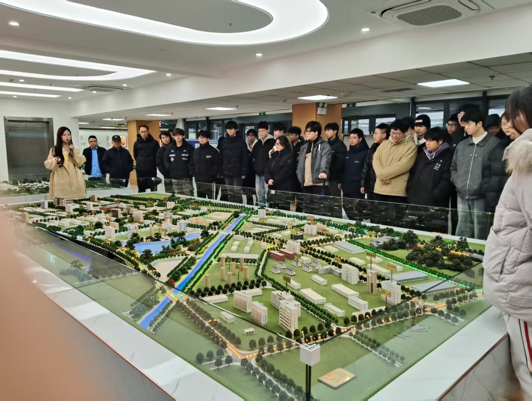 活動中,師生們先后參觀膜都小鎮(zhèn)展示區(qū)和泓冠光電生產展覽區(qū),通過沙盤模型、現(xiàn)場講解、座談交流等形式,深入了解膜都小鎮(zhèn)的產業(yè)布局、發(fā)展規(guī)劃與核心產業(yè)優(yōu)勢,直觀感受到功能膜產業(yè)的發(fā)展規(guī)模與前景。